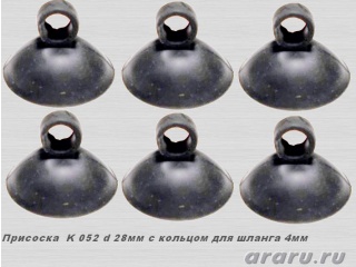 Присоска каучуковая K 052 d 28мм с кольцом для шланга 4мм /12шт/