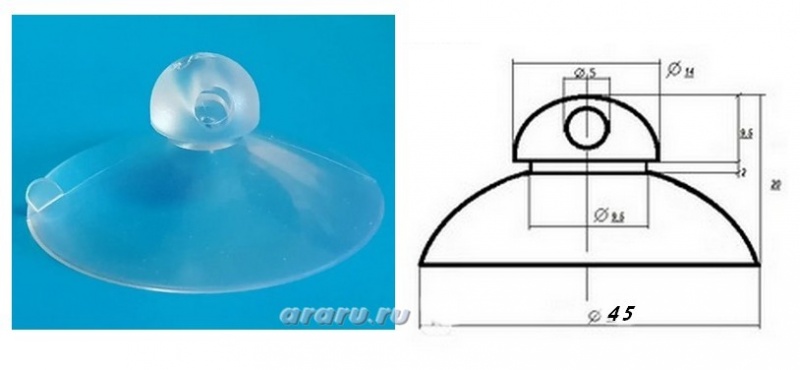 Присоска силиконовая SZ 501 d 45мм 1 отв. d 4мм /12шт/