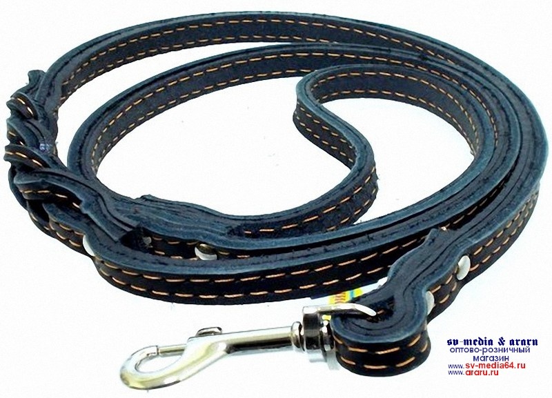 Поводок AM-(мод.607) №12 (Ч) двойной с карабином №7 (част.плет.) 1,2м, черн.