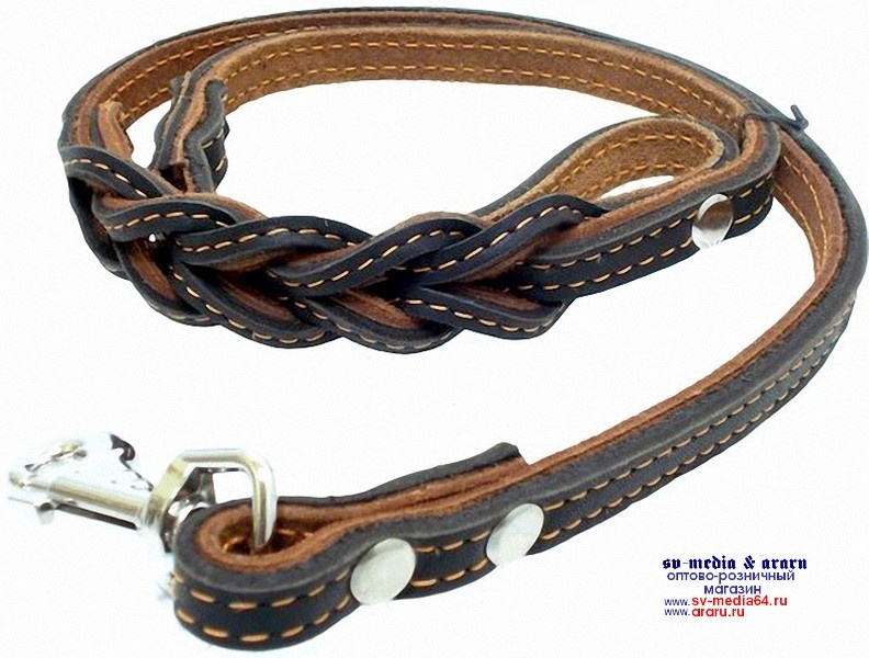 Поводок AM-(мод.608) №16 (Ч) двойной с карабином №30 (част.плет.) 1,2м, черн.