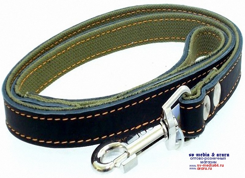 Поводок AM-(мод.609) №20 (Ч) кожа на брезенте с карабином №30 1,2м, черн.