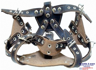 Шлейка AM-(мод.505) №25 (Ч) кожа на ватине (ездовая~боксёр), черн.
