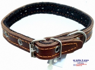 Ошейник AM-(мод.152) №15 (К) кожа на ватине с украшениями 35см, коричн.