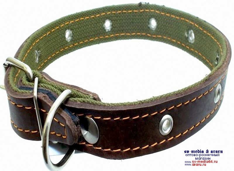 Ошейник AM-(мод.252) №25 (К) кожа на брезенте безразмерный 54см, коричн.