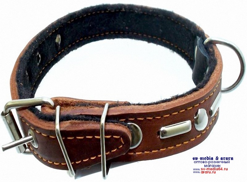 Ошейник AM-(мод.253) №25 (К) кожа на ватине с украшениями 55см, коричн.