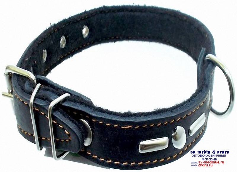 Ошейник AM-(мод.253) №25 (Ч) кожа на ватине с украшениями 55см, черн.