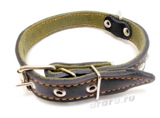 Ошейник AM-(мод.262) №25 (К) кожа на брезенте с украшениями, коричн.