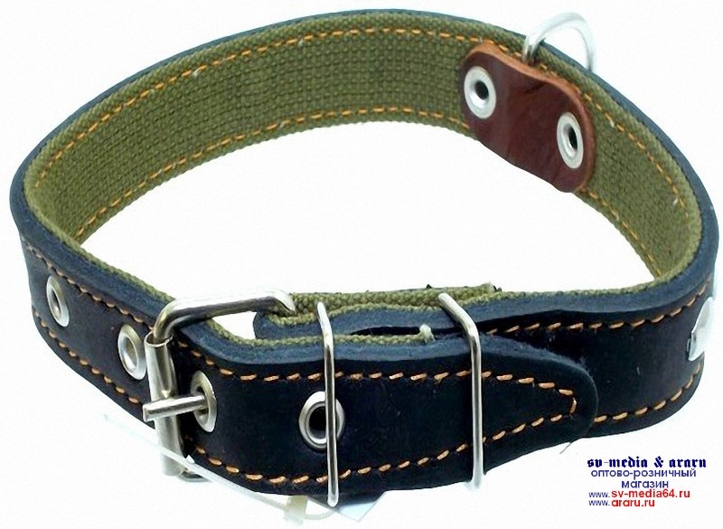 Ошейник AM-(мод.262) №25 (Ч) кожа на брезенте с украшениями, черн.