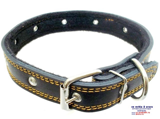 Ошейник AM-(мод.300) №30 (Ч) кожа на ватине безразмерный 60см, черн.