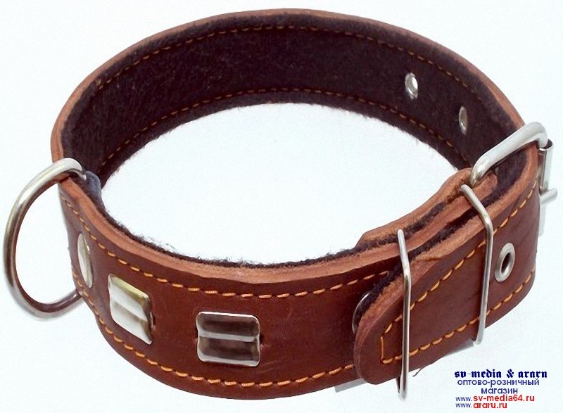 Ошейник AM-(мод.303) №30 (К) кожа на ватине с украшениями 60см, коричн.