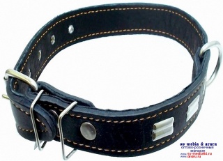 Ошейник AM-(мод.305) №30 (Ч) кожа двойной с украшениями 60см, черн.