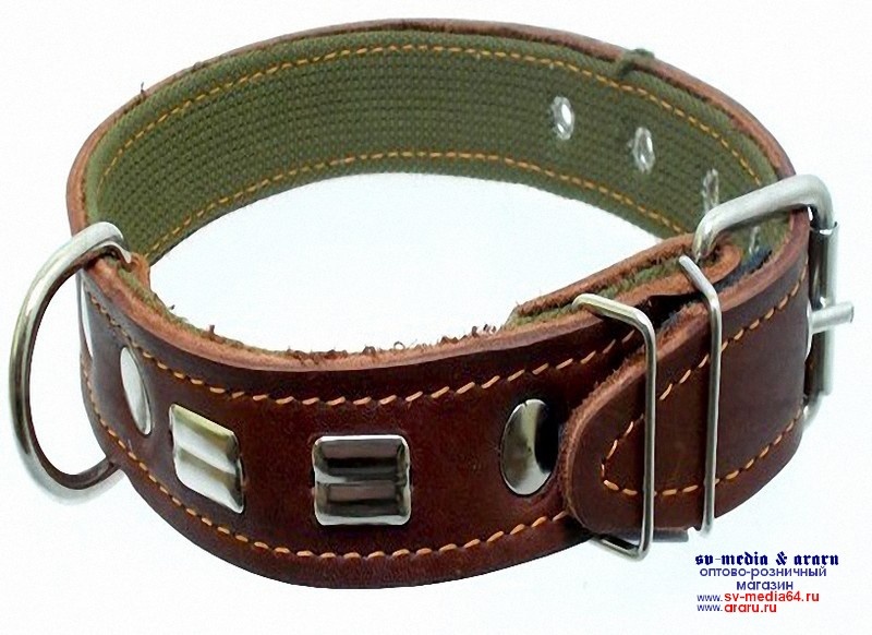 Ошейник AM-(мод.312) №30 (К) кожа на брезенте с украшениями 60см, коричн.