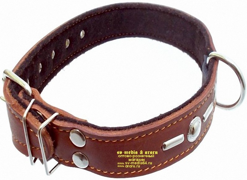 Ошейник AM-(мод.353) №35 (К) кожа на ватине с украшениями 65см, коричн.