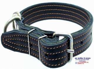 Ошейник AM-(мод.357) №35 (Ч) кожа на брезенте и коже (усиленный) 75см, черн.