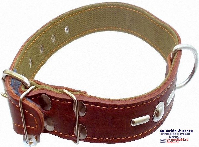 Ошейник AM-(мод.362) №35 (К) кожа на брезенте с украшениями 70см, коричн.