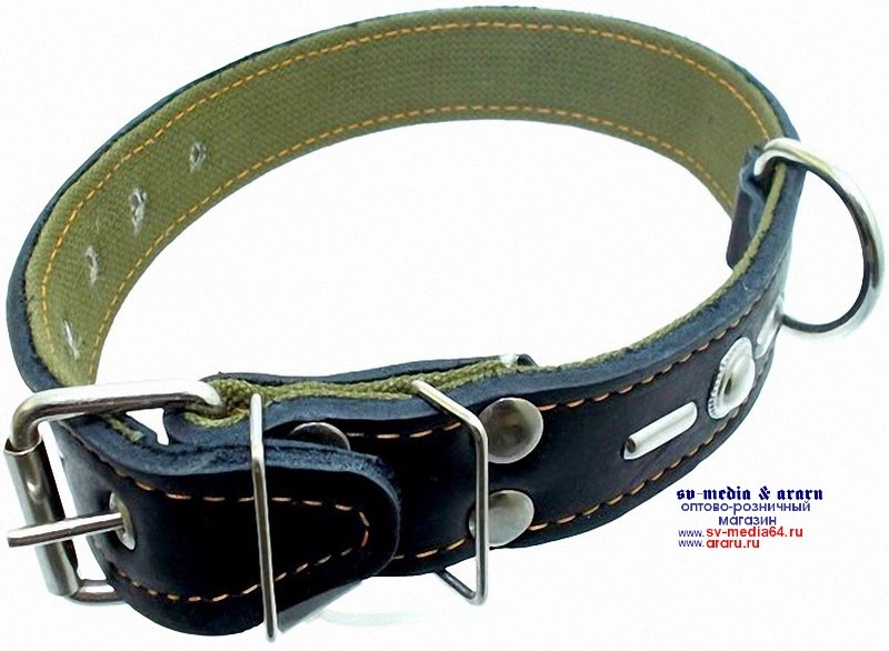 Ошейник AM-(мод.362) №35 (Ч) кожа на брезенте с украшениями 70см, черн.