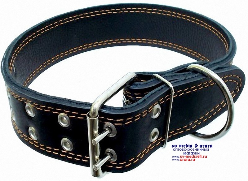 Ошейник AM-(мод.450) №45 (Ч) кожа двойной (чистый) 70см, черн.
