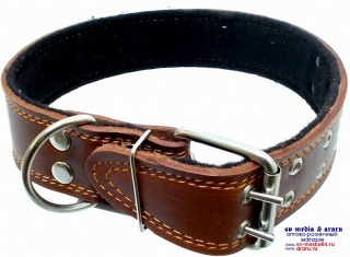 Ошейник AM-(мод.452) №45 (К) кожа на ватине с украшениями 70см, коричн.