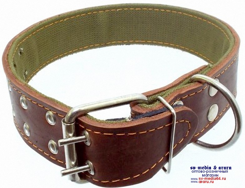 Ошейник AM-(мод.462) №45 (К) кожа на брезенте с украшения 75см, коричн.