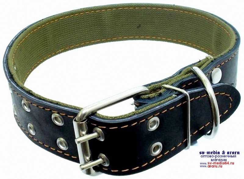 Ошейник AM-(мод.462) №45 (Ч) кожа на брезенте с украшения, черн.