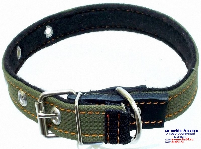 Ошейник AM-(мод.912) №35 (З) брезент одинарный на ватине 65см, зеленый