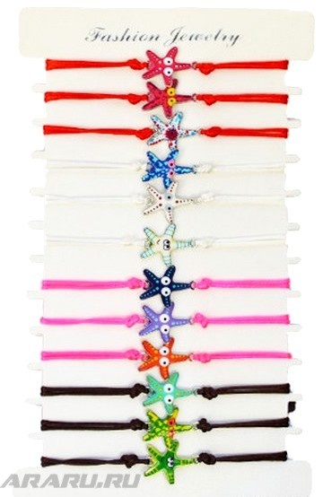 Браслет 10-11-292 нить с расписной подвеской, морск.звезда