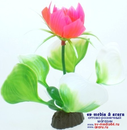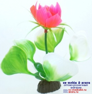 AP-018/10 Пластиковое растение 10см (зеленый+роз.цветок)
