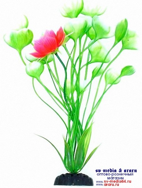 AP-018/30 Пластиковое растение 30см ((зеленый+роз.цветок)