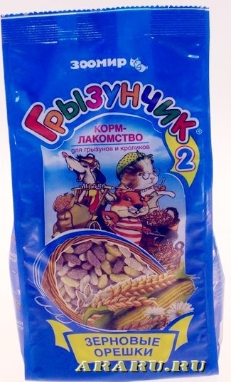 Корм "ГРЫЗУНЧИК" по праву называется кормом-лакомством, поскольку он имеет привлекательные для животного вкус и хрустящую структуру, удобные форму и размер гранул, а благодаря применению современных технологий - высокую усвояемость и питательную ценность.