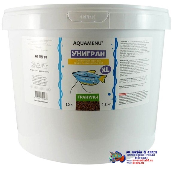 УНИГРАН предназначен для ежедневного кормления большинства видов аквариумных рыб: живородящих, цихлид, харациновых, лабиринтовых, карповых, различных сомов и других рыб длиной 3-10 см