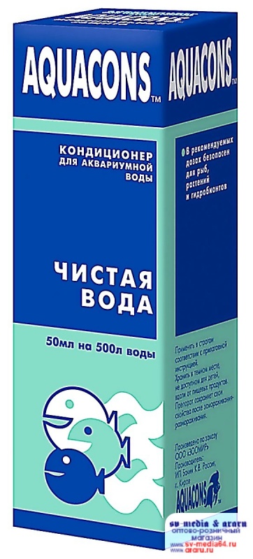 Кондиционер «АКВАКОНС ЧИСТАЯ ВОДА» предназначен для создания и поддержания безопасной, здоровой среды в аквариуме, за счет устранения мутности аквариумной воды любого происхождения (массовое развитие бактерий, мельчайшие частицы ила, одноклеточные водоросли, "цветение воды" и др.). После применения кондиционера вода становится абсолютно прозрачной.