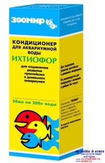 Кондиционер «ИХТИОФОР» предназначен для создания безопасной, здоровой среды в пресноводных и морских аквариумах, препятствующей развитию находящихся в аквариумной воде простейших, в частности таких, как ихтиофтириусы, костии и оодиниумы, а также вредных микроорганизмов.